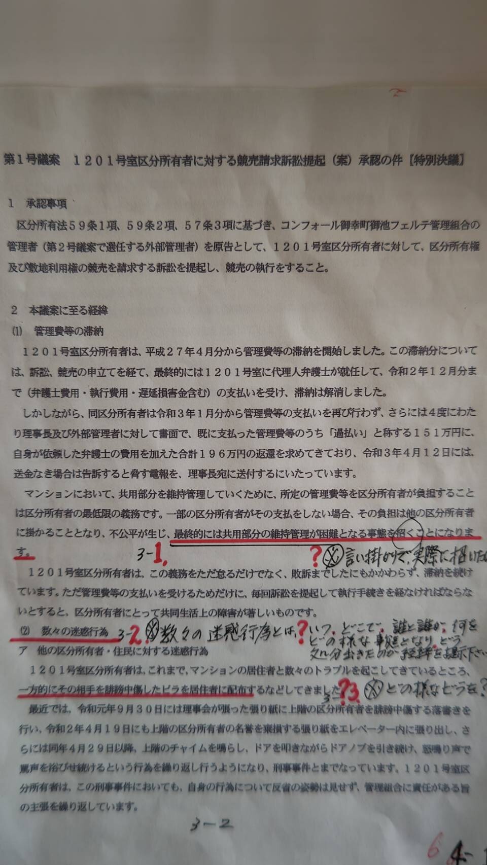 正当な理由もなく、何も言わず、茶番劇同様の裁判で組合側勝訴したと勘違いし、再度自宅マンションから1201号室住人を追い出したいと言う気持ちのみを早とちりして、1201号室に対する競売訴訟について、 1201号室が退去しなかった場合など、管理会社の詳細な競売手順について述べられている。